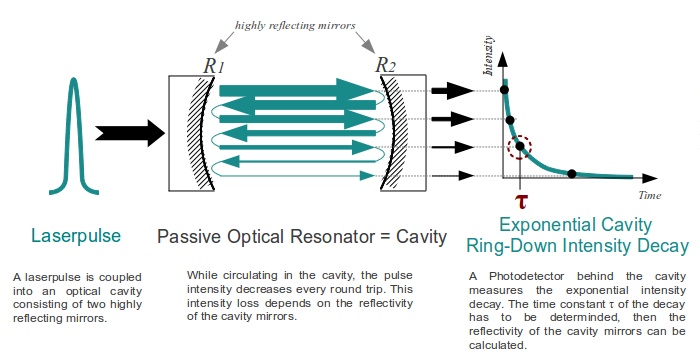 1)通过腔衰减时间测量,可以非常地测量反射率值R> 99%,透射率值T> 99%的低损耗光学元件。 与光谱仪中的测量相比,该方法有三个主要优点: