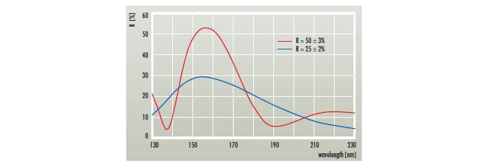 图2:R = 50±3%,R = 25±2%(背面未涂布)的标准输出耦合器的测量反射光谱