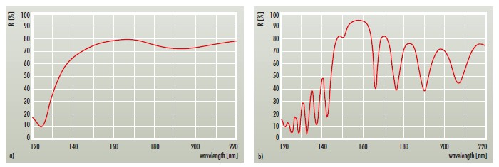 图3:针对193nm(a)优化的受保护的Al镜的测量反射光谱