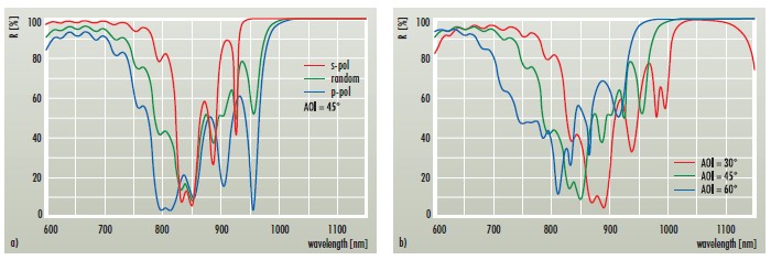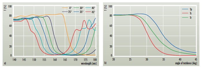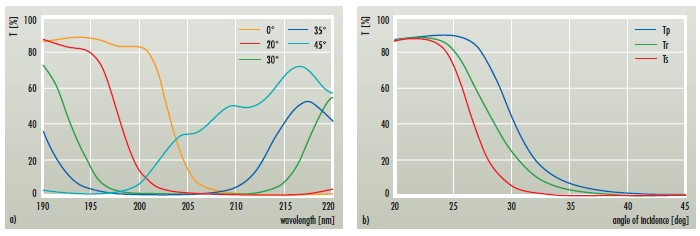 在AOI = 0°时,透射率从T> 75%变化到AOI = 45°时的T <5%