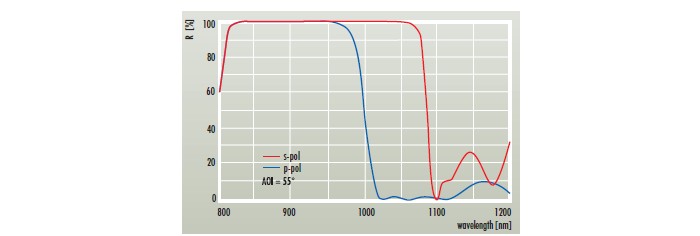 图3:对于s和p偏振光,AOI = 55°(布鲁斯特角)的标准TFP的反射光谱