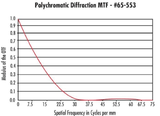 Figure 4.3: Polychromatic Diffraction MTF Graph for #65-553 25mm Dia. x 25mm FL Achromatic Lens |