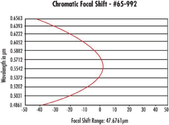 Figure 5.2: Chromatic Focal Shift Graph for #65-992 25mm Dia. x 25mm FL Hybrid Aspheric Lens |