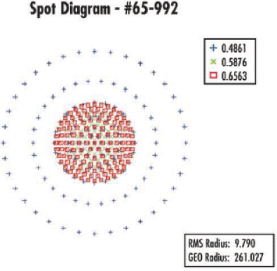 Figure 5.1: Spot Diagram for #65-992 25mm Dia. x 25mm FL Hybrid Aspheric Lens |