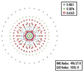 Figure 3.1: Spot Diagram for #45-097 25mm Dia. x 25mm FL PCX Lens |