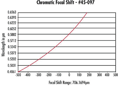 Figure 3.2: Chromatic Focal Shift Graph for #45-097 25mm Dia. x 25mm FL PCX Lens |
