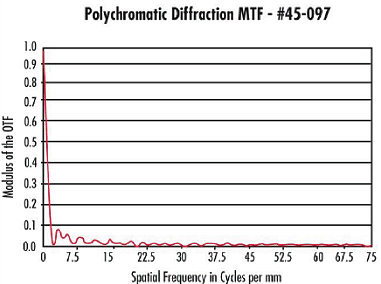Figure 3.3: Polychromatic Diffraction MTF Graph for #45-097 25mm Dia. x 25mm FL PCX Lens |