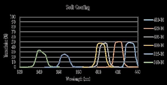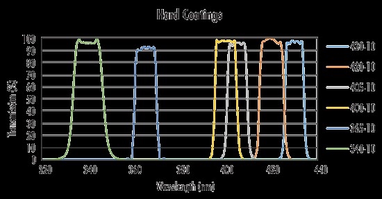 如图2所示,硬镀膜在可见光谱和紫外线中具有超过90%的透射率。另一方面,软镀膜无法达到90%的透射率,并且性能在紫外线附近显著下降。此外,起始和截止转换还有一些改进。软镀膜有个渐进的过渡,从没有透射率过渡到大透射率,而硬镀膜的过渡更陡。
