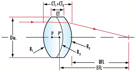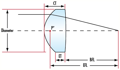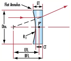边缘厚度 – 一个计算值,取决于透镜的半径、直径和中心厚度。