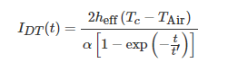 如果忽略每个表面上的对流和辐射,则梁中心表面上的温升随时间(t)的变化可由下式确定: